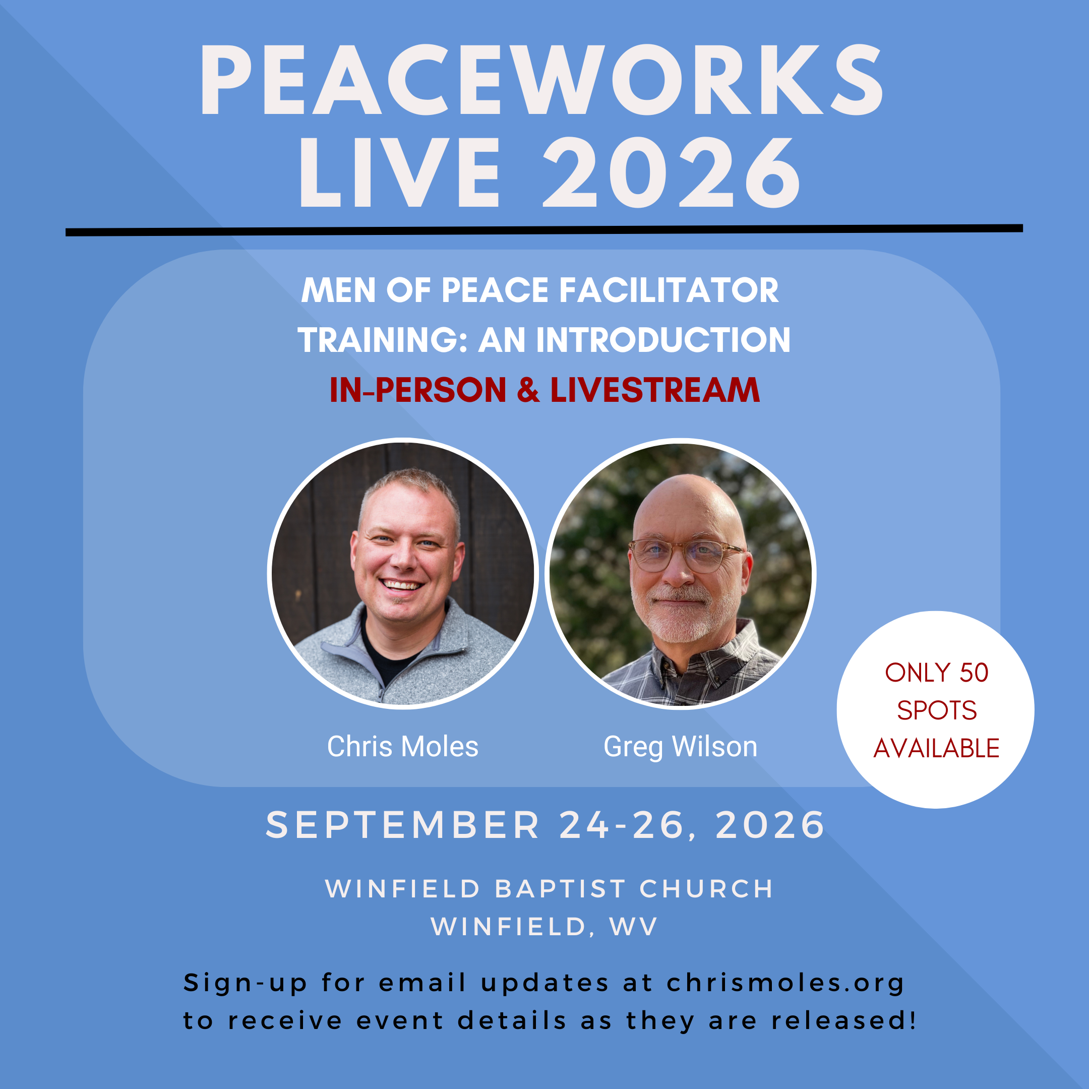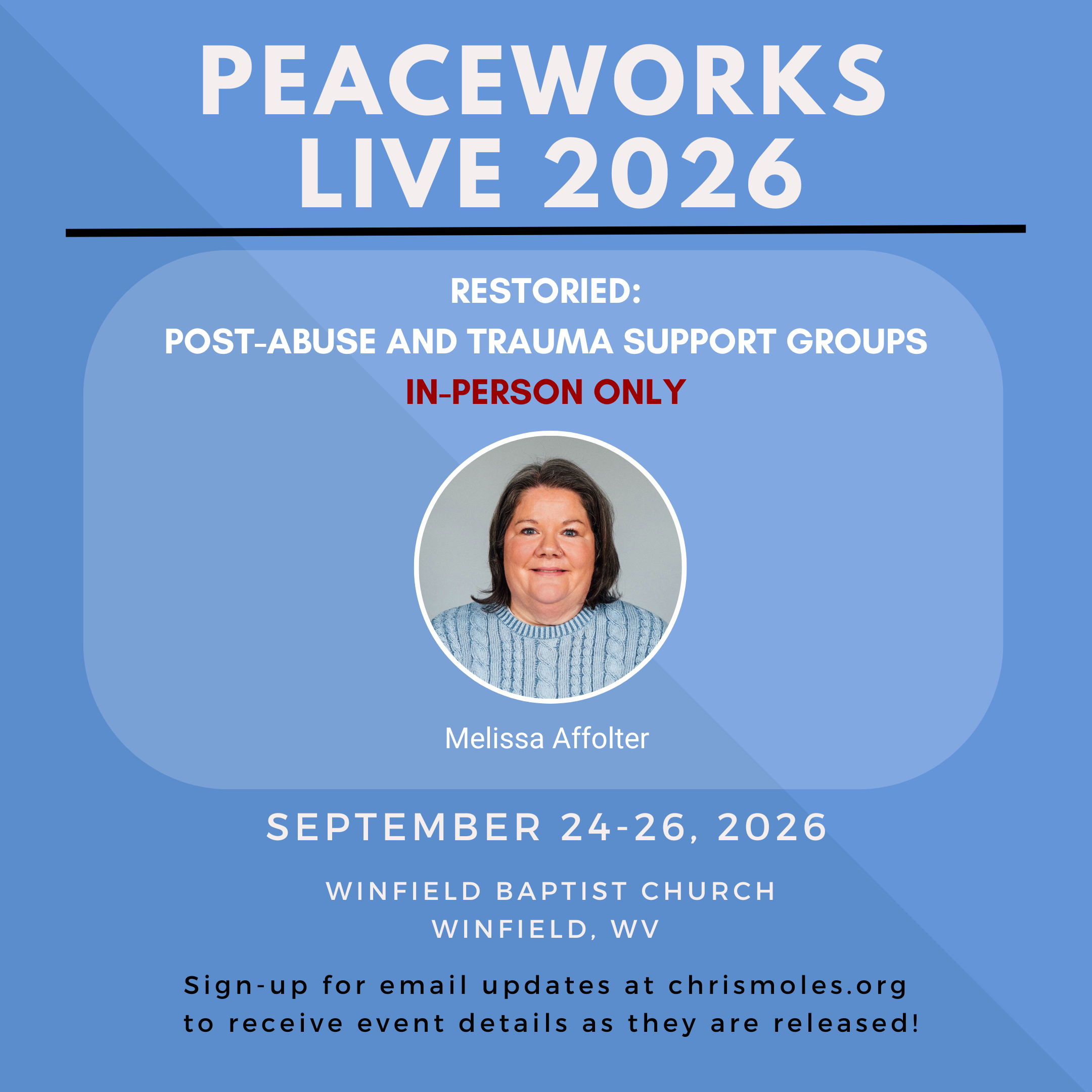 PeaceWorks Live 2026 will be held at Winfield Baptist Church (12902 Winfield Rd., Winfield, WV 25213).